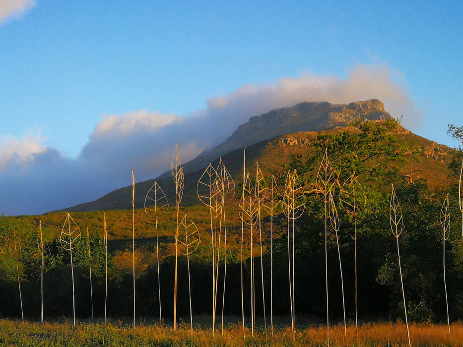 Strijdom has worked with this theme three times before; in Australia, Italy and Germany. “The wind is mysterious; it arrives out of nowhere and then it disappears again. I am intrigued by its sound through buildings and trees and am always aware that the first sign of its approach is when the leaves start to rustle. This is what I will attempt to express in the skeletal stems holding the leaves, suggesting the trace of the wind.” Land art is primarily about the value of experience, and retrieving the magic of its memory in years to come in an attempt to harness poetry rather than profit.